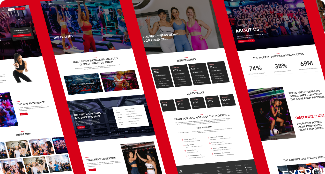 - Narrative: Worked with their team through discovery and stakeholder interviews to identify what actually differentiates BMF, then made sure that story was consistent across their website, social media, and in-studio experience.