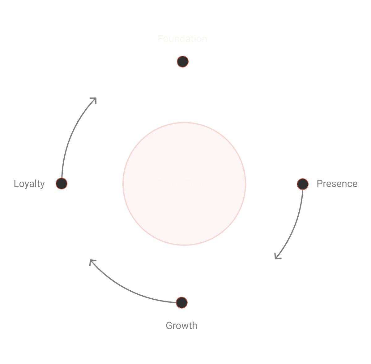 Foundation sets strategy. Presence builds awareness. Growth drives acquisition. Loyalty creates advocates. Each feeds the next. Everything compounds.